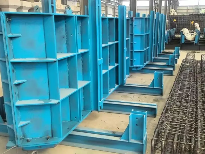 స్టీల్ కాంక్రీట్ ఫార్మ్వర్క్ స్టీల్ ప్లేట్లు మరియు స్టీల్ విభాగాలతో తయారు చేయబడింది, ఇందులో అధిక బలం, దృ g త్వం మరియు డైమెన్షనల్ ఖచ్చితత్వం ఉంటుంది. స్టీల్ ఫార్మ్వర్క్ యొక్క మృదువైన ఉపరితలం అధిక-నాణ్యత పోసిన కాంక్రీటును నిర్ధారిస్తుంది, ఇది పదేపదే ఉపయోగం మరియు అధిక టర్నోవర్ను అనుమతిస్తుంది. ప్రామాణిక భాగాల యొక్క పెద్ద-స్థాయి ఉత్పత్తిలో ఇది తరచుగా ఉపయోగించబడుతుంది, అంటే ప్రీఫాబ్రికేట్ చేయబడిన భవన భాగాల మాస్ ఫ్యాక్టరీ ఉత్పత్తి మరియు మాడ్యులర్ భవనాల నిర్మాణం.