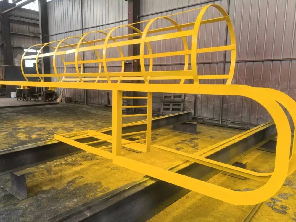 మెటీరియల్ స్పెసిఫికేషన్లు: సాధారణంగా ఉపయోగించే పదార్థాలు హాట్-రోల్డ్ స్టీల్ విభాగాలు, ∠50×5" యాంగిల్ స్టీల్ (5 మిమీ మందం, 50 మిమీ సైడ్ పొడవు), ∠60×40×3" దీర్ఘచతురస్రాకార ట్యూబ్లు (60 మిమీ x 40 మిమీ క్రాస్-సెక్షన్, 3 మిమీ గోడ మందం, 3 మిమీ గోడ మందం, 3 మిమీ రౌండ్ ట్యూబ్ × 3 మిమీ 30 ×). ఉపయోగించిన పదార్థం నిచ్చెన యొక్క ఎత్తు మరియు బరువుపై ఆధారపడి ఉంటుంది, 6 మీటర్ల కంటే ఎక్కువ నిచ్చెనల కోసం, కనీసం ∠63×6" యాంగిల్ స్టీల్ లేదా అదే బలం కలిగిన పైపును ఉపయోగించమని సిఫార్సు చేయబడింది.